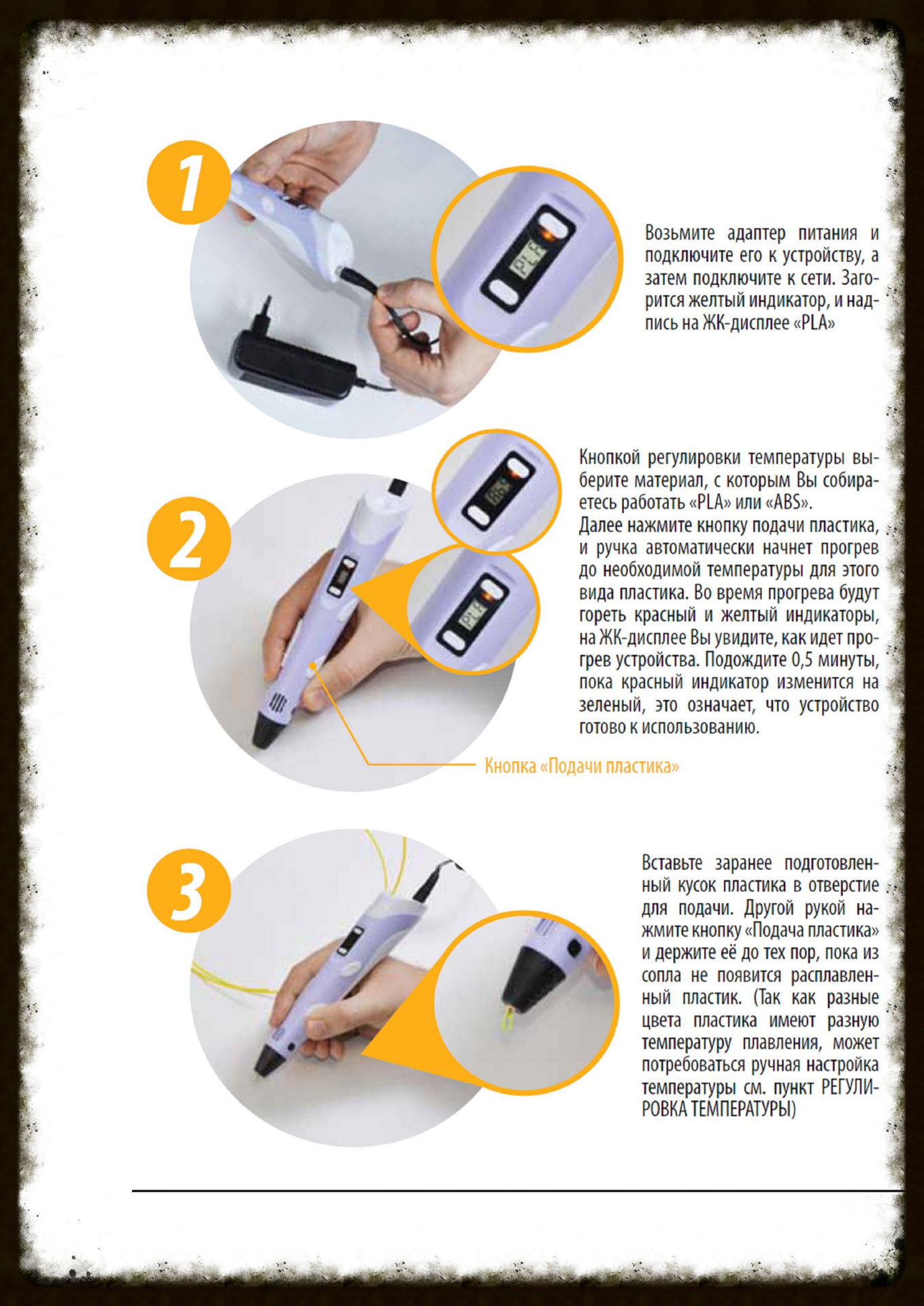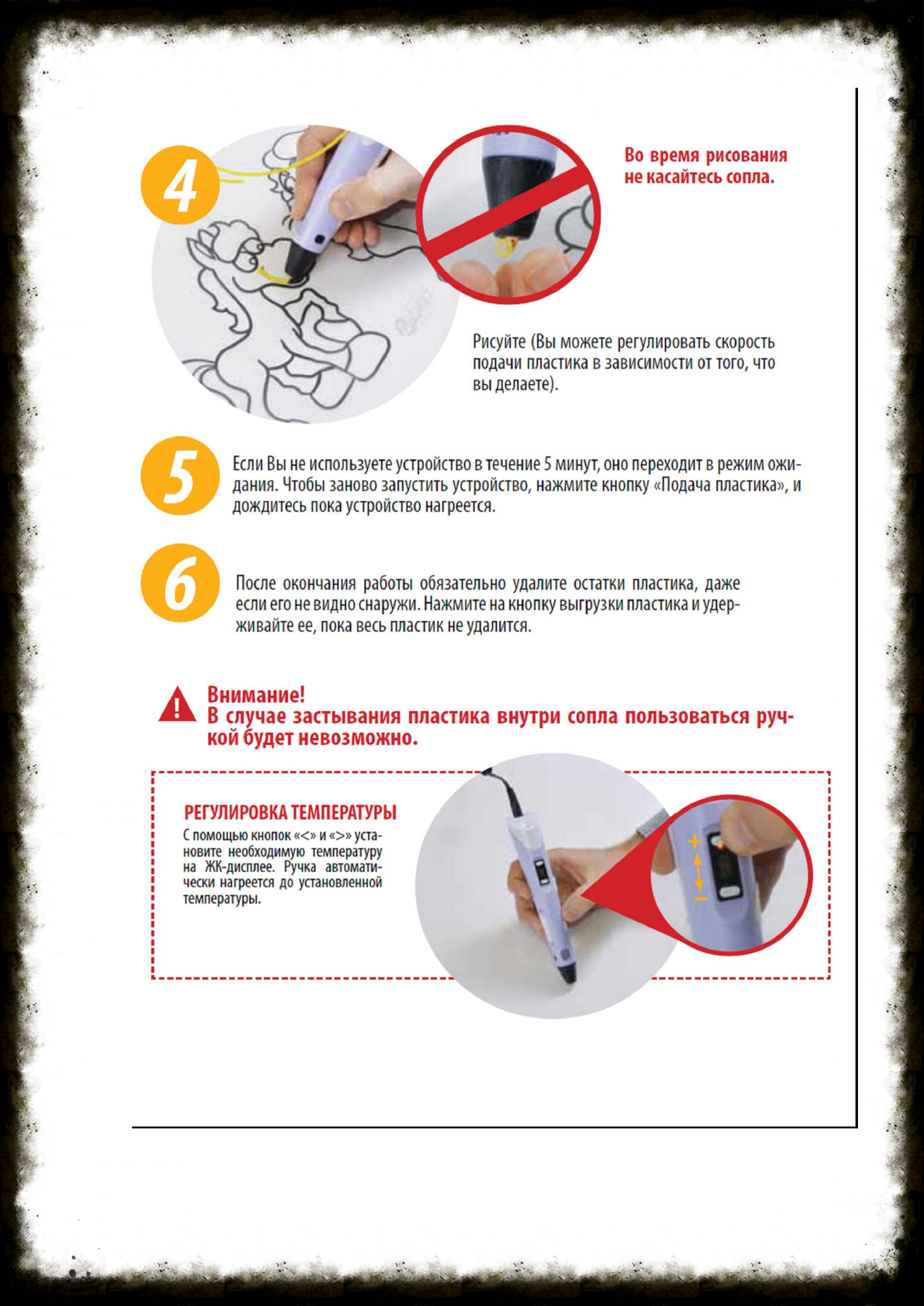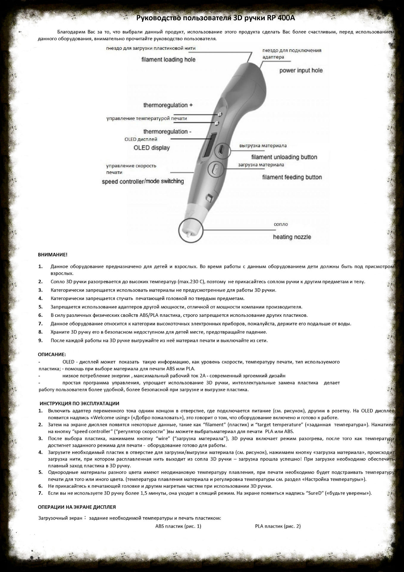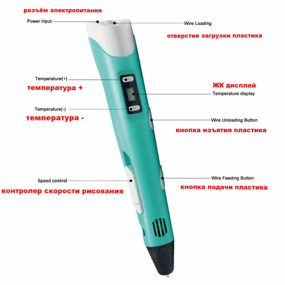 безопасен (не допускает возможности получения ожога). Хотя температурный режим при работе 3d ручки находится от 160 до 240 градусов по Цельсию. Температура зависит от выбранного вами режима работы PLA или ABS.